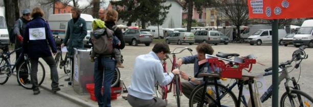 Photo : L'équipe de Roule & Co lors d'un atelier mobile de réparation...