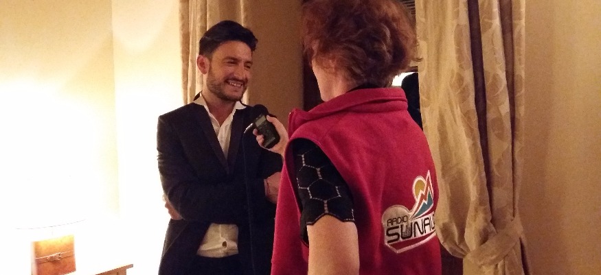 Photo : Michal au micro de Sunalpes Radio dans une des chambres de l'Abbaye