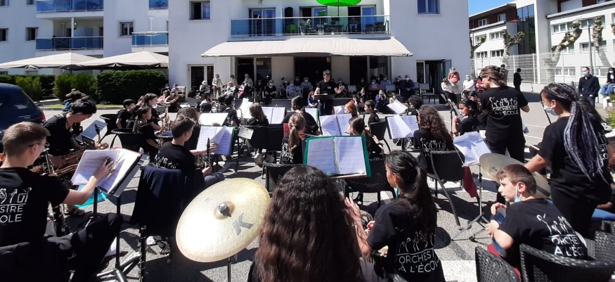 Les responsables ? Les jeunes musiciens du Dispositif Musical de la Jonchère (DMJ) installés sur le parking de la résidence pour un concert privé, réservé aux résidents. L'objectif ? Créer du lien et permettre à cette formation de musiciens de se produire devant un public.