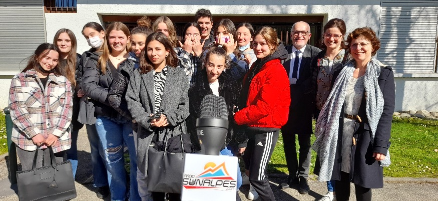 Photo : les élèves de BAC PRO accompagné(e)s de leurs professeures et du proviseur du Lycée.