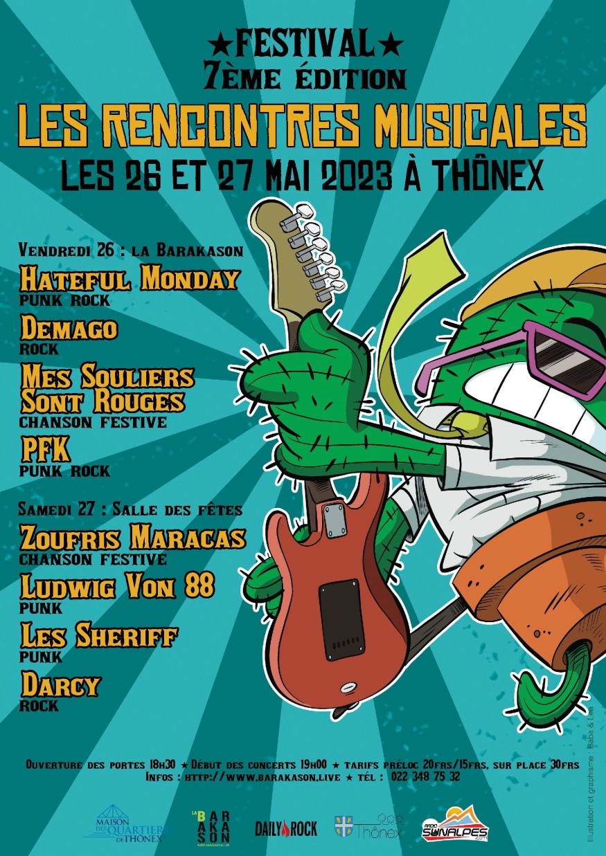 La 7 ème édition du festival Les Rencontres Musicales se déroulera les 26 et 27 mai 2023. Le 26 mai à la Barakason et le 27 mai à la salle des fêtes de Thônex, en Suisse !