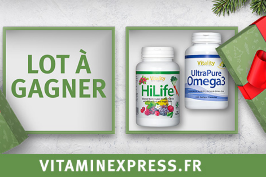 Après le succès du 1er concours "VitaminExpress", pour Fêter Noel, tentez de gagner 2 produits phares de la gamme "Vitality": UltraPure Omega 3 HiLife Multivitamines Et en ce moment, une offre réservée aux auditeurs de SunAlpes : -15% avec le code VITAMINE15 sur VitaminExpress Pour multiplier vos chances, n'oubliez pas de partager le jeu concours sur vos réseaux Facebook / Twitter ou Instagram. N'oubliez pas de nous l'indiquer ci-dessous en commentaires. Inscrivez-vous à la newsletter pour connaitre en avant première le nom des gagnant(e)s Bonne chance avec VitaminExpress et SunAlpes Radio. (Jeu Gratuit sans......