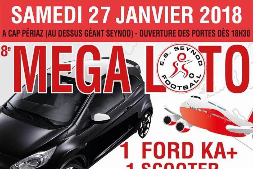 Tentez de gagner vos cartons pour participer au 8ème MEGA LOTO organisé par l'ES SEYNOD FOOT le Samedi 27 Janvier. + de 16 000 euros de lots à gagner dont 1 FORD KA PLUS WHITE. Inscrivez-vous ci-dessous pour tenter de remporter 5 pré-ventes donnant droit à 6 cartons et un emplacement réservé. Bonne chance avec l'ES SEYNOD FOOT et Sunalpes Radio // // ...