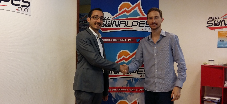 Photo : MEMERY Mathias, Responsable du Développement Marketing à l'ASPTT Annecy et BORIANCIC Geoffrey, Responsable Antenne de Sunalpes dans les locaux de la radio pour officialiser le partenariat.