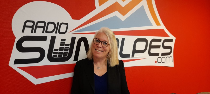 Photo : Carole Betaillole, dans les studios de SunAlpes Radio.