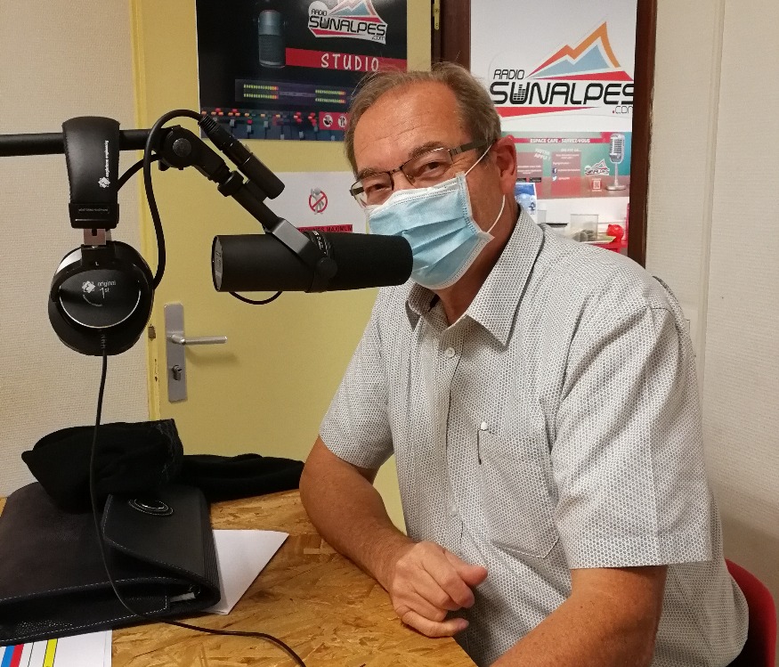 Photo : Olivier Barry, dans les studios de SunAlpes Radio, situés sur la commune déléguée de Seynod.