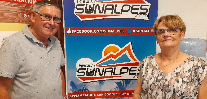 Photo : Monique Léger et Bernard Marechal (Vice-Président) dans les studios de SunAlpes Radio.