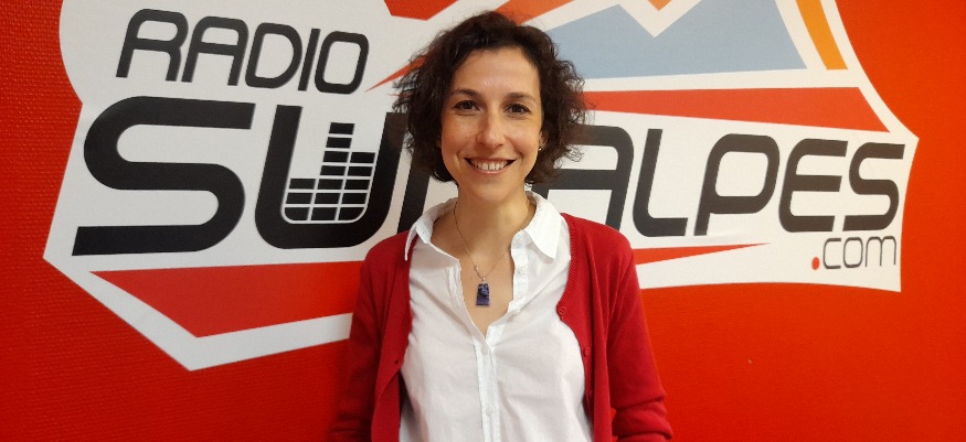 Photo : Laura Tchernin, dans les studios de SunAlpes Radio à Annecy.