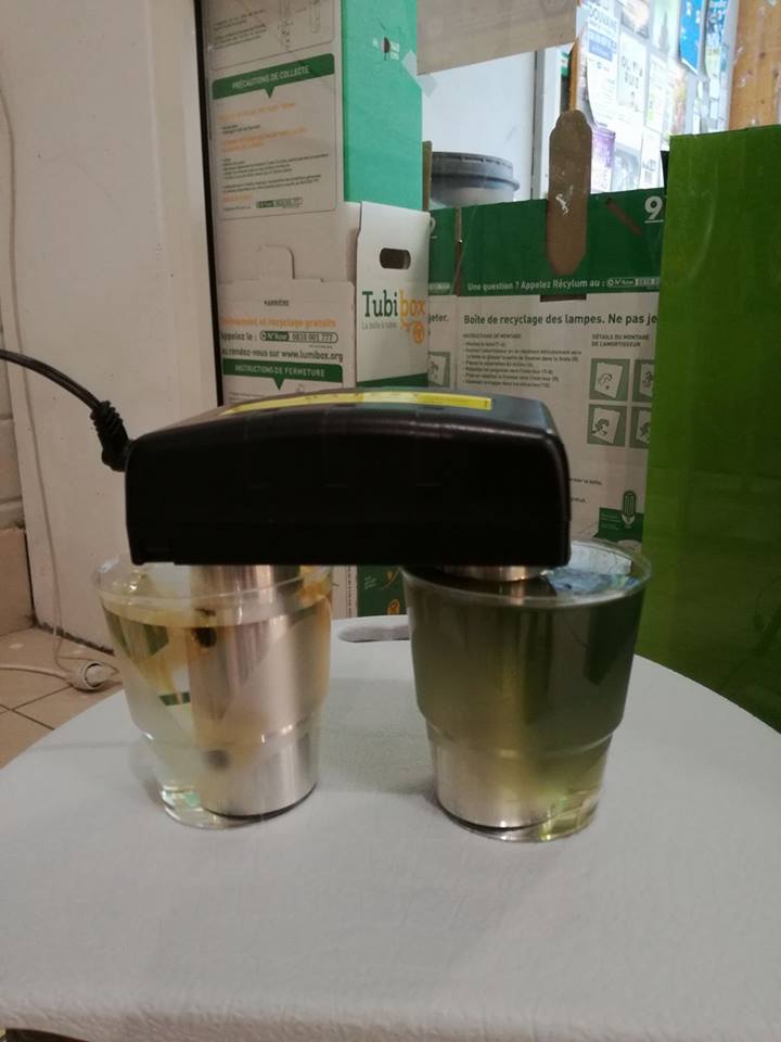 1ère Photo : A gauche, de l'eau NATARYS (claire) et à droite de l'eau du robinet