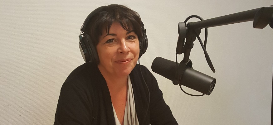 Photo : Claire Margueret dans les studios de SunAlpes Radio.