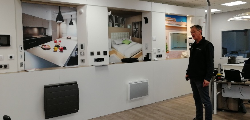 Photo : Herve Galmiche, Directeur de l'Agence Real d'Annecy-Pringy, nous présente leurs différents produits dans cet espace de 130 m² entièrement connecté.