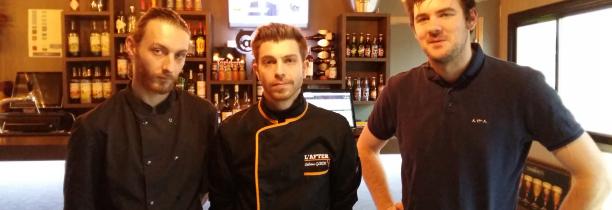 Photo : L'équipe de la Brasserie L'AFTER pose devant le comptoir